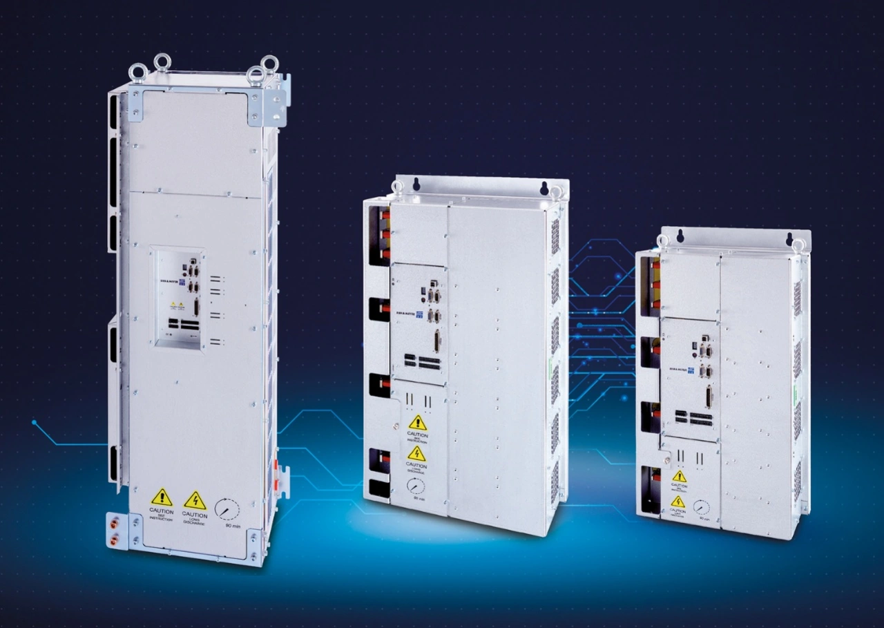 Bei der Entwicklung der SD4M-Serie hat Sieb & Meyer Erprobtes mit neuester Regelungs- und Kommunikationstechnik kombiniert. Die Drei-Level-Technologie des SD4M liefert in der Kombination mit geräteabhängigen Schaltfrequenzen bis zu 32 kHz eine hohe Stromqualität und sorgt so für geringe Motorverluste und einen entsprechend hohen Wirkungsgrad. Die SD4M-Varianten stehen für einen Leistungsbereich von 70 bis 490 kW bzw. für 120 bis 800 A Nennstrom zur Verfügung. Über die standardmäßig verfügbare Multiprotokoll-Echtzeit-Ethernet-Schnittstelle (u.a. Profinet IO, EtherCAT) ist eine unkomplizierte Implementierung des SD4M in die übergeordnete Steuerung möglich. Die Gerätevarianten mit DC-Versorgung lassen sich über ein externes rückspeisefähiges Netzteil optimal betreiben. Alle Gerätevarianten sind NRTL/CSA-zertifiziert, so dass sie ohne zusätzliche Abnahme in Maschinen für den US-amerikanischen Markt integrierbar sind.