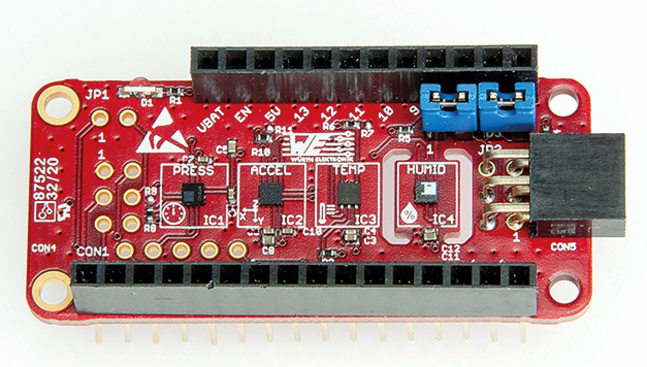 FeatherWings sind eine Serie stapelbarer Prototyping-Boards mit unterschiedlichen Funktionen. Würth Elektronik hat eine Reihe solcher Entwicklungsplatinen im Angebot – Open Source und vollständig kompatibel mit dem »Feather«-Formfaktor. Dazu gehören verschiedene FeatherWing-Funktionen, von Sensorik über WE Pro-Ware Wireless-Konnektivität und WiFi bis hin zu verschiedenen Stromversorgungen. Es gibt ein GitHub Repository [1] für alle Open-Source-Boards einschließlich ihrer Schaltpläne, BoMs, Software und Cloud-Vernetzungsbeschreibungen für Azure und AWS.