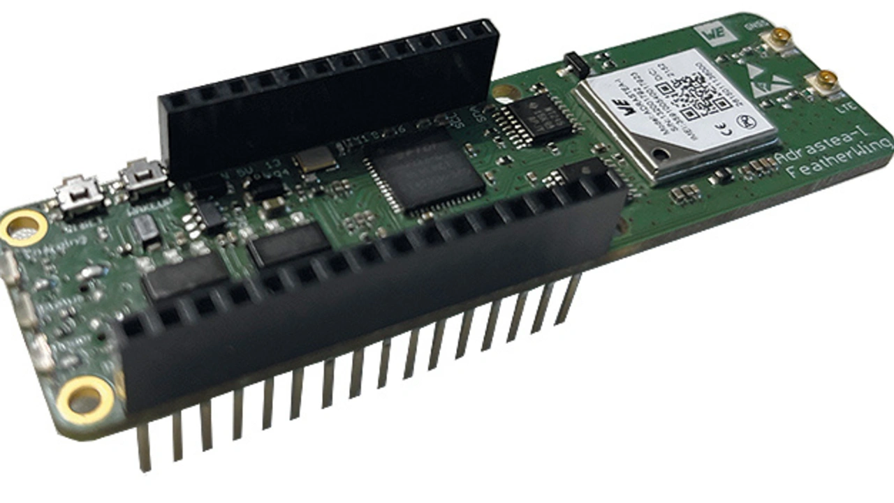 Adrastea-I ist ein hoch integriertes Mobilfunkmodul von Würth Elektronik in kompakter Bauform (13,4 x 14,6 x 1,85 mm3) für die Kommunikationsstandards LTE-M und NB-IoT, das zusätzlich auch noch einen integrierten ARM-Cortex-M4-Mikrocontroller und eine globale Satellitennavigationsfunktion (GNSS) umfasst. Das Bild zeigt die brandneue Featherwing-Implementierung von Adrastea-I.