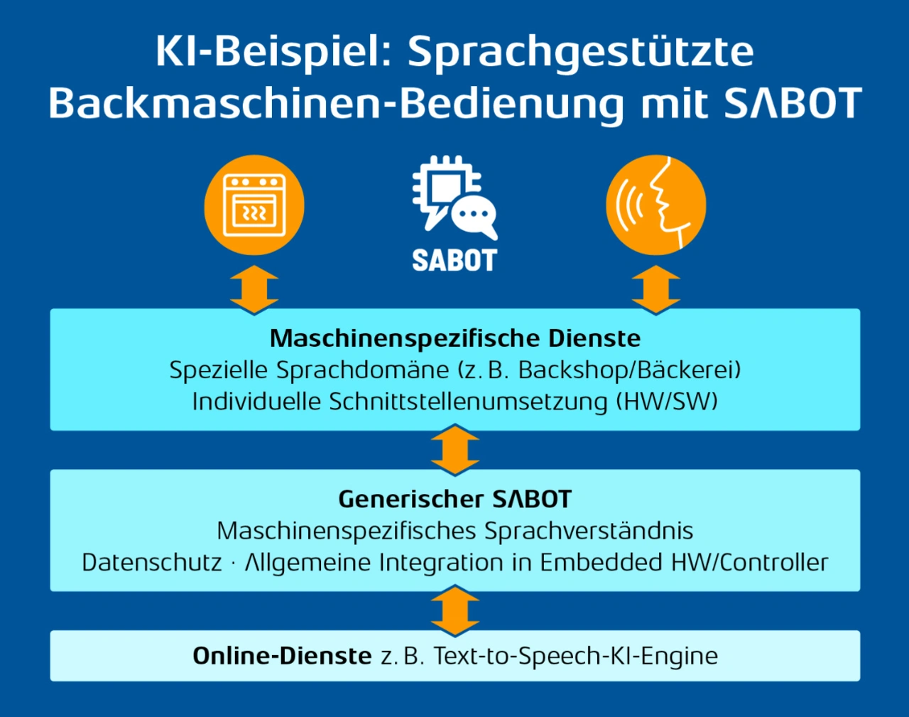 Noch innovativer ließe sich dieses Konzept durch die Einbindung einer Sprachsteuerung via Headset – beim iPad eine besonders einfache Übung – und den Einsatz eines auf industrielle Anforderungen abgestimmten Large Language Models (LLM) für KI-getriebene Kommunikation. Was auf diesem Gebiet möglich ist, zeigt beispielsweise die Lösung, die Sabo Mobile IT als Schwesterunternehmen der Grossenbacher Systeme AG anbietet. Es handelt sich dabei um eine Plattform für die Entwicklung KI-unterstützter Sprachassistenten (»Voice User Interfaces«) zur Maschinensteuerung über Dialoge in natürlicher menschlicher Sprechweise. Basierend auf einem Framework aus diversen unabhängigen Diensten sowie einigen wenigen Hardwarekomponenten zur Kommunikation, Verarbeitung von Audiosignalen und Abschwächung von Umgebungsgeräuschen, lässt sich die »SABOT« genannte Lösung in eine Vielzahl von Maschinensteuerungen integrieren. So können Maschinen auch im Zuge eines Retrofit mit einem zukunftsweisenden HMI ausgestattet und grundlegend modernisiert werden.