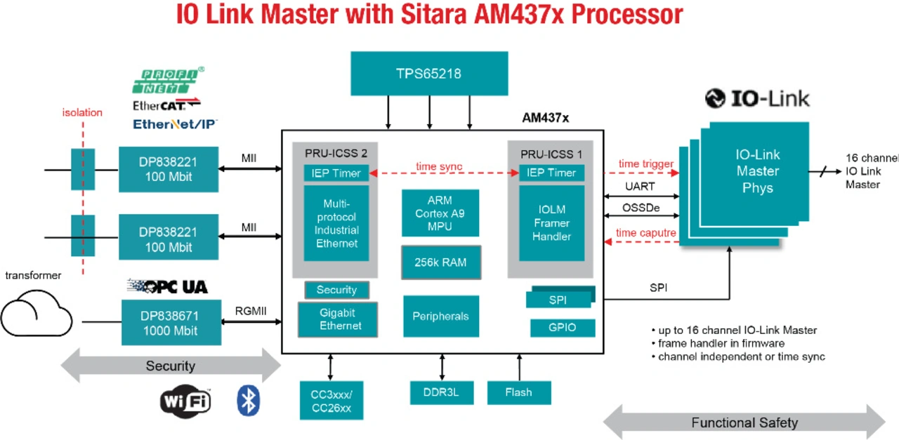 Anstelle zusätzlicher Hardware sind die ARM-Prozessoren der Sitara-Familie von TI mit einer integrierten PRU-ICSS-Einheit (Programmable Real-Time Unit and Industrial Communication Subsystem) ausgestattet, die mehrere Industrial-Ethernet-Protokolle unterstützt.