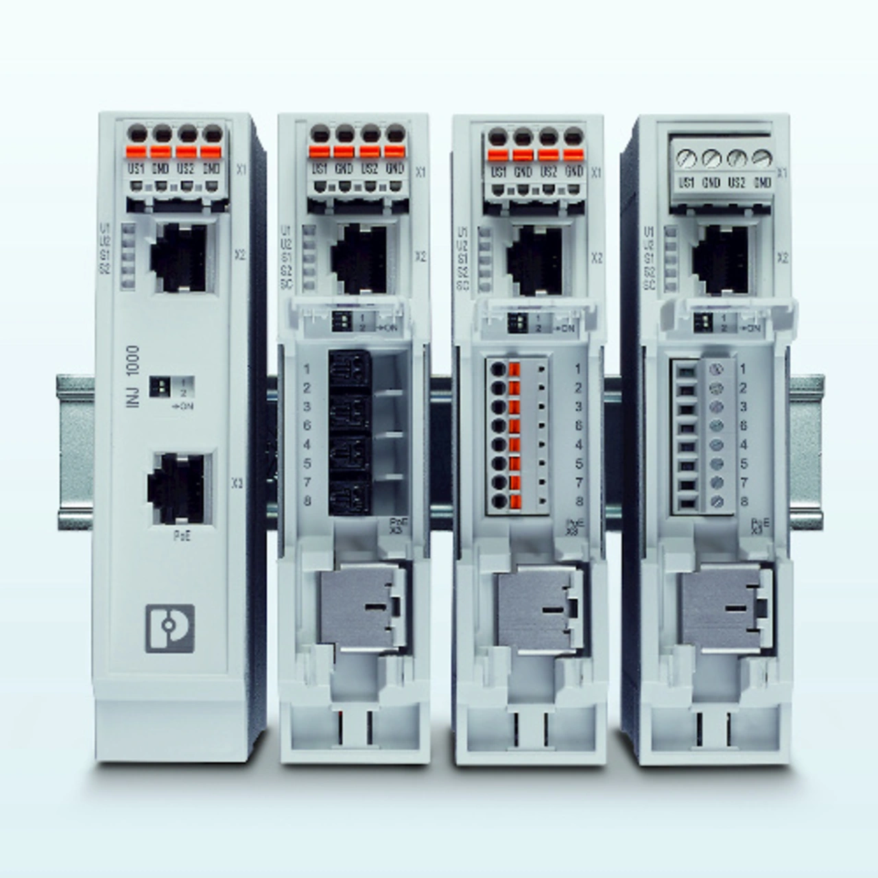 PoE-Injektoren versorgen im Feld installierte PoE-fähige Geräte wie etwa Kameras über ein gemeinsames Kabel mit Daten und Spannung. Die entsprechende Produktfamilie von Phoenix Contact bietet verschiedene Anschlussarten für das PoE-führende Feldkabel: RJ45-, Schraub-, Push-in- und IDC-Schnellanschlusstechnik. Damit ist die Funktion eines Patch-Panels erstmals in PoE-Injektoren integriert. Das aufwändige Konfektionieren eines RJ45-Steckers an ein offenes Leitungsende entfällt. Neben der großen Auswahl unterschiedlicher Anschlussklemmen bieten die Geräte eine schnelle, werkzeuglose Kabelschirmkontaktierung mit gleichzeitiger Zugentlastung.