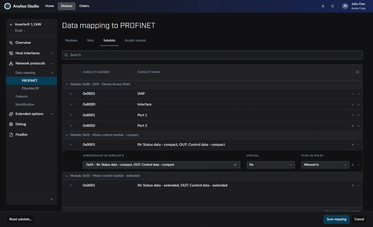 Anwender des Anybus-Studio können in einer grafischen Entwicklungsumgebung problemlos definieren, welche Daten und welches Kommunikationsverhalten welches Gerät unterstützen soll. Dazu ist kein tiefes Protokollwissen notwendig. Das Tool führt Anwender Schritt für Schritt durch alle notwendigen Angaben. Die geführte Einrichtung in Kombination mit einer intelligenten Validierung ermöglicht ein schnelleres und präziseres Design der Kommunikationsschnittstelle für die verschiedensten Protokolle. Im Fokus stehen dabei hauptsächlich gängige Industrial-Ethernet-Protokolle, aber eine Erweiterung in Richtung IT/IoT mit OPC UA, MQTT und Cloud-Konnektoren wird folgen. Neue Technologien wie SPE oder TSN werden ebenfalls adressiert.