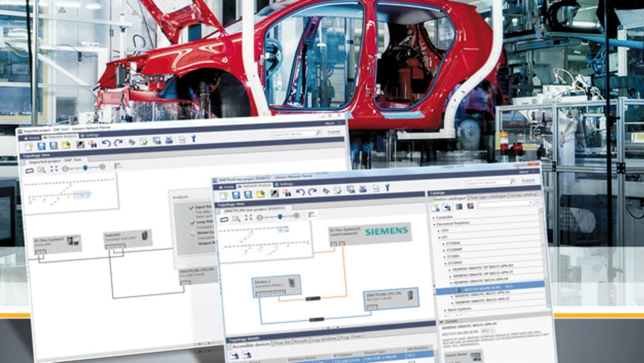 Darüber hinaus bietet Siemens ein neues Software-Tool zur Auslegung und Simulation von Profinet-Automatisierungsnetzwerken. Der Siemens Network Planner Sinetplan richtet sich an Anlagenplaner, -bauer und -betreiber und unterstützt sie von der Planung über die Inbetriebnahme bis zum Betrieb eines Profinet-Kommunikationsnetzes. Um die Betriebssicherheit zu gewährleisten und Probleme während der Inbetriebnahme zu vermeiden, wird das Netz schon in der Planungsphase topologisch geeignet aufgebaut und werden mögliche Engpässe etwa durch Lastspitzen simuliert. In der Betriebsphase bietet Sinetplan via Online-Scans, Traffic-Shaper oder Reporting-Funktionen Transparenz über die Netzwerkauslastung bis auf Port-Ebene der einzelnen Teilnehmer. Dies verhindert Downtime durch Netzüberlast und erhöht damit die Verfügbarkeit des Netzes und der Produktion.