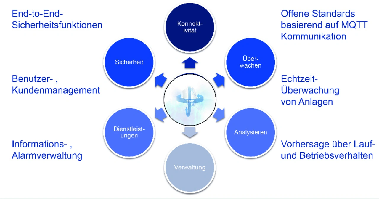 Auch Installateure, OEMs und Betreiber profitieren durch eine standortübergreifende Vernetzung und die zur Verfügung stehenden Daten und Analysemöglichkeiten. Sie können ihre Anlagen besser verwalten und effizienter betreiben, indem sie die Betriebsdaten in Echtzeit visualisieren und auswerten. Dadurch können sie Optimierungspotenziale erkennen, die zu einer höheren Verfügbarkeit, einer optimierten Nutzung der Geräte, Maschinen und Anlagen sowie zu einer effizienteren Instandhaltung führen.