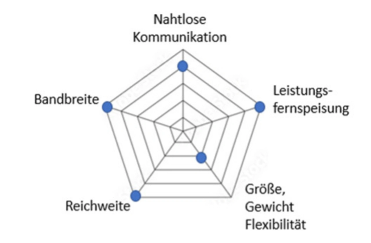 Dagegen steht mit SPE und speziell mit IEEE 802.3cg der physische Übertragungsstandard 10Base-T1L, der in seiner Kombination von Eigenschaften zusammen mit IEEE 802.3bu Power-over-Data-Line (PoDL) für die Feldebene ein »Alleskönner« ist. Sehr übersichtlich lässt sich eine vorteilhafte Kombination von Eigenschaften in einem Spinnennetzdiagramm darstellen, wie im Schaubild 2. Sie muss aber sicherlich für jede Applikation neu bewertet werden.