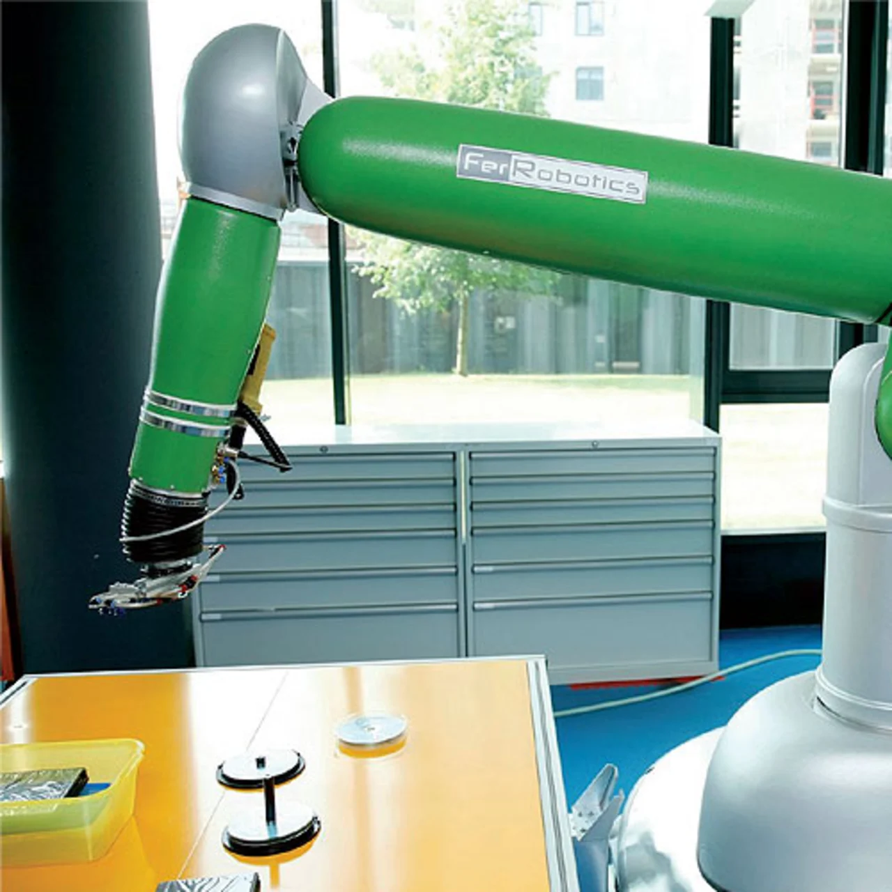 Menschliche Bewegungen imitieren und »Empfindungsvermögen« zeigen kann der Industrieroboter »Romo« des Linzer Unternehmens FerRobotics Compliant Robot Technology. »‘Romo’ ist im Gegensatz zu herkömmlichen Robotern dazu fähig, seine Kraft der jeweiligen Tätigkeit anzupassen, und kann somit völlig neue Aufgaben übernehmen«, betont Dr. Paolo Ferrara, einer der beiden Geschäftsführer von FerRobotics. Herkömmliche Roboter führen ihre Aufgaben nur auf Basis ihrer ursprünglichen Programmierung aus. »Romo« dagegen dosiert die Kraft entsprechend dem entgegen gesetzten Widerstand. »Der Vorteil des ‘Romo’ liegt in der Positionstoleranz und der damit verbundenen Sicherheit«, erläutert Ferrara. Der Roboter sei druck- und kontaktsensibel, er besitze gewissermaßen »echtes« Gefühl. »Es ist denkbar, ihn aufgrund seiner Eigenschaften in unmittelbarer Nähe von Arbeitern einzusetzen«, verdeutlicht Ferraras Geschäftsführer-Kollege Dr. Roland Naderer.
