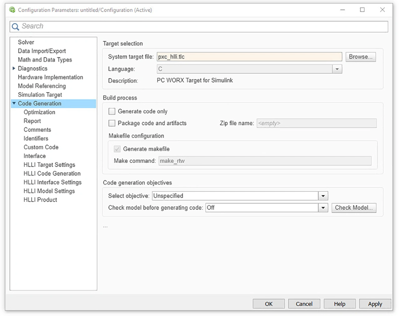 Als Schnittstelle von der PLCnext Technology zur Entwicklungsumgebung Matlab/Simulink dient das Add-on „PC Worx Target for Simulink“. Es ermöglicht die automatische Erzeugung von Code des zu implementierenden Modells für alle gängigen Industriesteuerungen der Produktfamilien Remote Field Controller (RFC) und Axioline Controller (AXC). Zu diesem Zweck erzeugt es die Schnittstelle zwischen dem erstellten Code aus dem Simulink Coder und dem PLCnext Framework. Mit dem Add-on bekommen die Simulink-Anwender erweiterte Einstellmöglichkeiten, etwa um spezielle Änderungen am Code oder anderen Konfigurationsoptionen vorzunehmen, bevor diese mit nur einem Mausklick kompiliert werden (Bild 1).