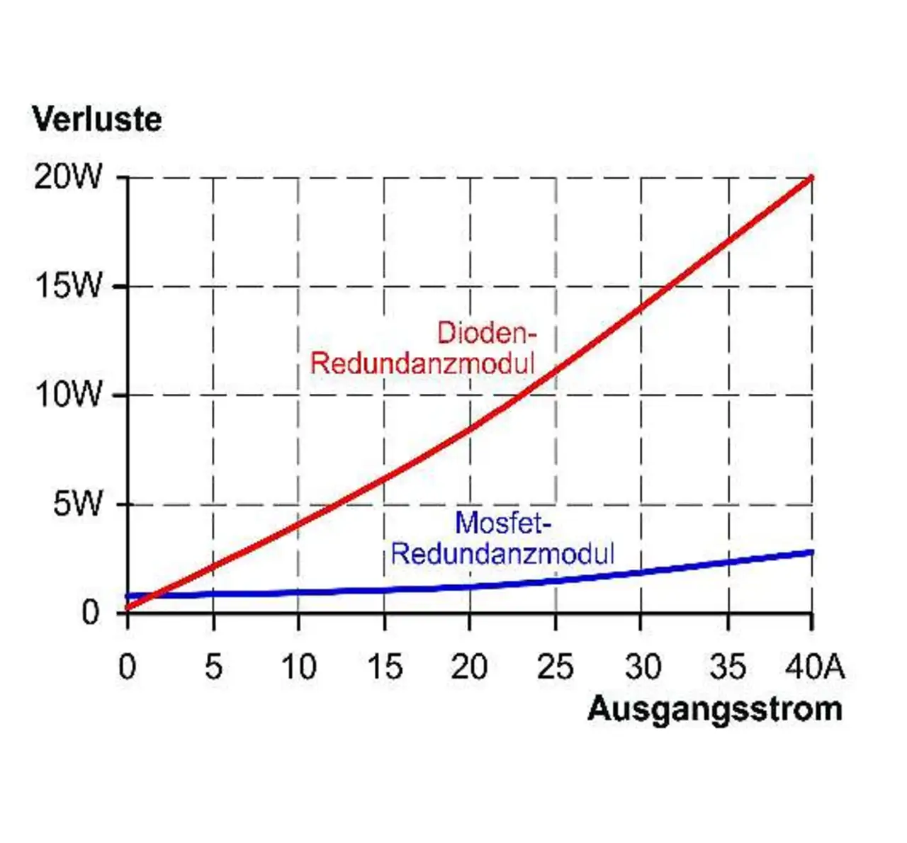 Um kritische Anlagen sicher zu versorgen, müssen Stromversorgungen redundant ausgelegt sein. Das geschieht mit Redundanzmodulen. Klassische Redundanzmodule mit Entkoppeldioden haben jedoch Verluste von um die 20 W. Mithilfe von MOSFETs anstelle von Dioden ließen sich diese Verluste auf etwa 2,7 W senken.