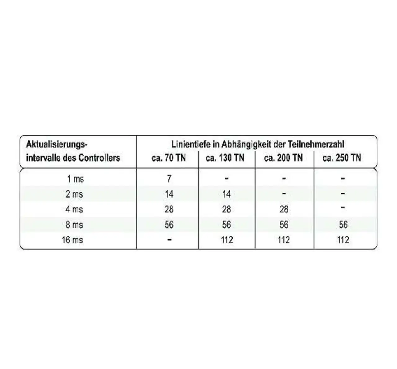 Ein weiteres Stichwort in der Planung lautet Linientiefe (Kaskadierung von I/O-Geräten). Hierbei gilt es vorab zu klären, ob die Linientiefe zur Anwendung passt, wenn eine bestimmte Aktualisierungsrate vorgegeben ist (Bild 1). Linientiefe bedeutet auf das Bild des Straßenverkehrs übertragen, wie viele Ampeln beziehungsweise Ampelübergänge (Switches) auf dem Weg zum Ziel zu passieren sind.