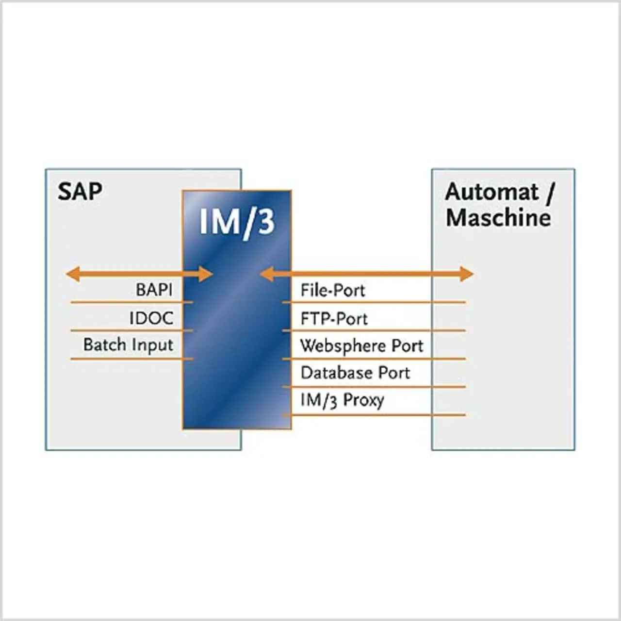 Die Lösung der Problematik liegt in einer standardisierten Anbindung der Automaten und Maschinen an alle SAP-Systeme. Der Interface-Manager IM/3 von Realtech beispielsweise generiert eine solche standardisierte Anbindung, indem er innerhalb des SAP-Systems arbeitet und sich dessen Ressourcen bedient. Weitere Hard- und Software ist nicht nötig. Nach außen verbindet der IM/3 das SAP-System mit der Maschine mittels klassischer Datei-Übertragungsmöglichkeiten wie per FTP oder auch über direkte Online-Anbindungen – Datenbankzugriffe via ODBC oder Native SQL, Remote Function Call (RFC) oder Simple Object Access Protocol (SOAP). Je weiter der Interface-Manager seinen Arm zur Fremdapplikation ausstrecken kann, desto näher rückt das End-to-End- Monitoring – letztlich Wunschziel eines jeden Schnittstellenprozesses. Hierbei kann der komplette Prozess, also von der Datenerzeugung im einen System bis hin zur Verbuchung im anderen System in einer Oberfläche kontrolliert und überwacht werden. Um ein solches End-to-End-Monitoring zu ermöglichen, kann auf der Nicht-SAPSeite ein IM/3-Proxy installiert werden, der die Verarbeitung auf der Nicht-SAPSeite kontrolliert und den Datentransfer zwischen IM/3 und der Automaten-Applikation sicherstellt.