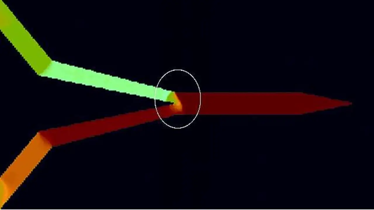 Als sehr kritisch hat sich die Bewegung der Domänenwand über die Spitzen (Bild 2) erwiesen. Mit umfangreichen mikromagnetischen Simu--lationen wurde deshalb eine optimale Geometrie ermittelt und die Domänenbewegung über die Spitze anschließend im Experiment bestätigt. Allerdings ist derzeit das realisierte magnetische Arbeitsfenster noch zu klein, um direkt daraus ein Produkt realisieren zu können. Weitere Arbeiten sind noch notwendig; sie werden von den Indus-triepartnern nach Auslauf des Förderprojektes weitergeführt.