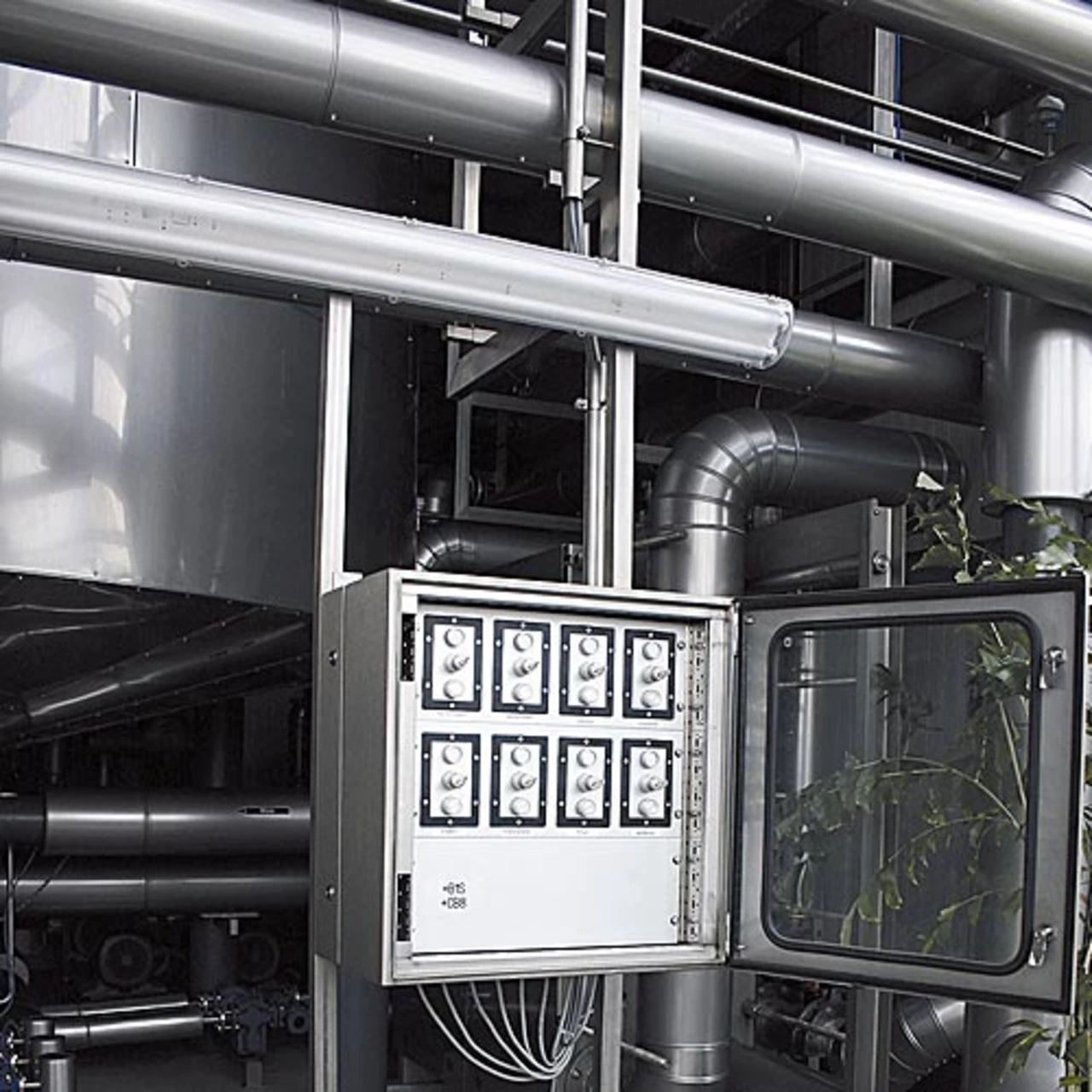 Die Temafa-Konstrukteure bringen die SVE-Einheiten teilweise direkt an der Maschine an und ordnen jedem Schlüssel einen Leuchttaster zu, der den Stillstand der Maschine anzeigt und damit auch deutlich macht, dass der Schlüsselwahlschalter abgezogen werden kann. Der Anwender muss dieses Signal quittieren und kann erst im Anschluss daran die Schutztür mit dem Schlüssel öffnen. So ist der Betriebszustand stets transparent.