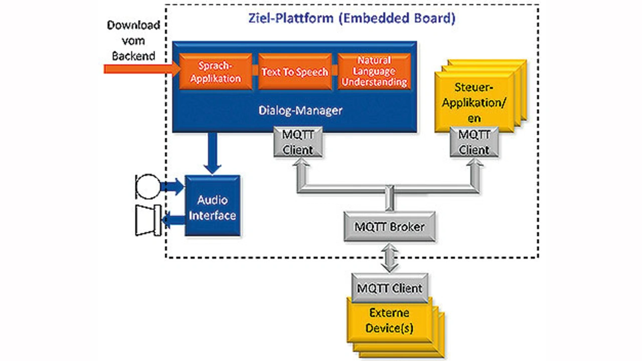 Sind alle Worte definiert, werden mit den KI-basierten Algorithmen die definierten Sprachressourcen in ein statistisches und ein semantisches Modell übersetzt und zum Download angeboten. Das Ergebnis wird in die Zielplattform heruntergeladen und ge-startet. Dann kann der Netzwerkstecker gezogen werden – das Endprodukt läuft autark. Der Ablauf in der fertigen Applikation ist in Bild 3 dargestellt.