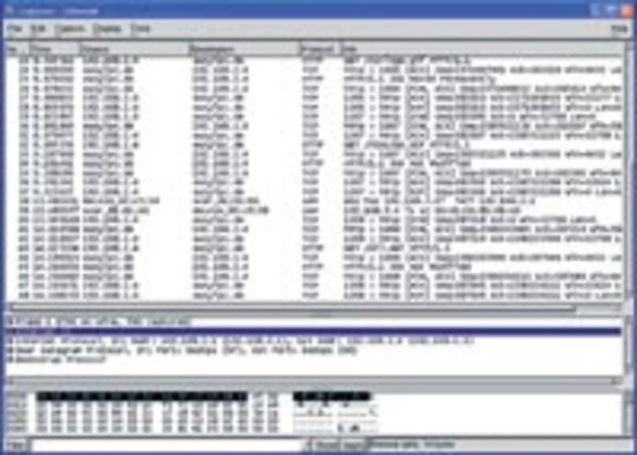 Als Abhörwerkzeug diente hier ein Programm mit dem Namen Ethereal. Es steht im Internet kostenlos für Windows- und Linux-Rechner zur Verfügung, sogar der Quellcode kann geladen werden. Ethereal ist von Haus aus ein so genanntes Sniffer-Programm. Es zeichnet jedes Datenpaket einer LAN- oder WLAN-Verbindung auf und ermöglicht die detaillierte Betrachtung auf TCP/IP-Protokoll und Byte-Ebene. Dabei werden alle Geheimnisse wie MAC- sowie IP-Adressen und darüber hinaus auch Passwörter sichtbar.