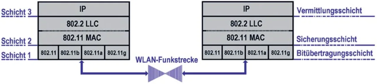 WLANs nach dem aktuellen 802.11b- beziehungsweise 802.11g-Standards sind als mittelschnelle drahtlose Verbindung zur Gebäudevernetzung gedacht. Es werden 11 beziehungsweise 54 Mbps (brutto) mit maximal etwa 100 mW übertragen.
