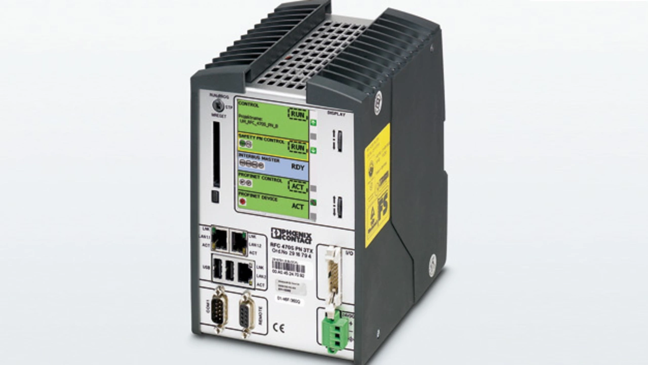 Zum Betrieb des Safe-AI-Systems ist neben den Standardbaugruppen des I/O-Systems Axioline eine Hochleistungssteuerung des Typs RFC 470S PN 3TX (Remote Field Controller) von Phoenix Contact erforderlich (Bild 2). Zunächst nehmen die Standard-I/O-Baugruppen pro Sicherheitsfunktion die 4-bis-20-mA-Signale mindestens eines zweikanaligen Sensors auf. Die Signale werden dann über Profinet an die Steuerung übertragen. Die eigentliche Verarbeitung der Analogsignale geschieht anschließend im sicheren Teil des RFC 470S PN 3TX. Ergänzend zum Sensorsignal verarbeitet dieser Teil der Steuerung ein redundantes Referenzsignal. Dazu steuert die SPS das Ausgangsmodul der Safe-AI-Station an. Der angesteuerte Ausgang ist direkt mit einem Eingangsmodul derselben Safe-AI-Station verbunden. Im Rahmen einer Referenzwertmessung wird das Eingangssignal nun vom RFC 470S PN 3TX ausgewertet.
