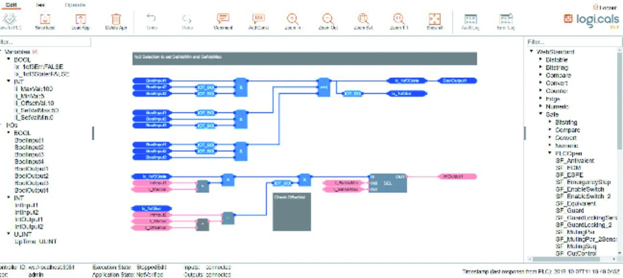 Als Anbieter von Software-Tools und Plattformen für die industrielle Automatisierung hat logi.cals unter dem Stichwort „Pragmatic Safety“ eine Lösung verwirklicht, die aus einem Browser-basierten Engineering-Tool zur Programmierung und Parametrierung besteht. Hinzu kommt ein umfassender Baukasten vorgefertigter und zertifizierter Module für die funktionale Sicherheit, der schnelle und maßgeschneiderte Lösungen ermöglicht. In diesem Baukasten sind wichtige Soft- und Hardware-Komponenten verfügbar, die ISH aus Kreuztal bei Siegen beisteuert. Hierzu gehören eine sicherheitsgerichtete, skalierbare Hardware, eine umfassende Bibliothek sicherer Bausteine, zusammengefasst in einer modernen Entwicklungs-Plattform, sowie die sicherheitsgerichtete Kommunikation, etwa über einen Fail-Safe-over-EtherCAT-Master und -Slave. Eine Safety-Test-Library und eine Safety-Motion-Library beschleunigen die Entwicklung. Die TÜV-Gutachten der Module verringern Entwicklungszeit und -kosten. Zudem ist derzeit eine der weltweit ersten Gleitkomma-Bibliotheken für sicherheitsgerichtete Anwendungen in Vorbereitung. Dieser Bausteinkasten ist als sogenanntes Compliant Item verfügbar.