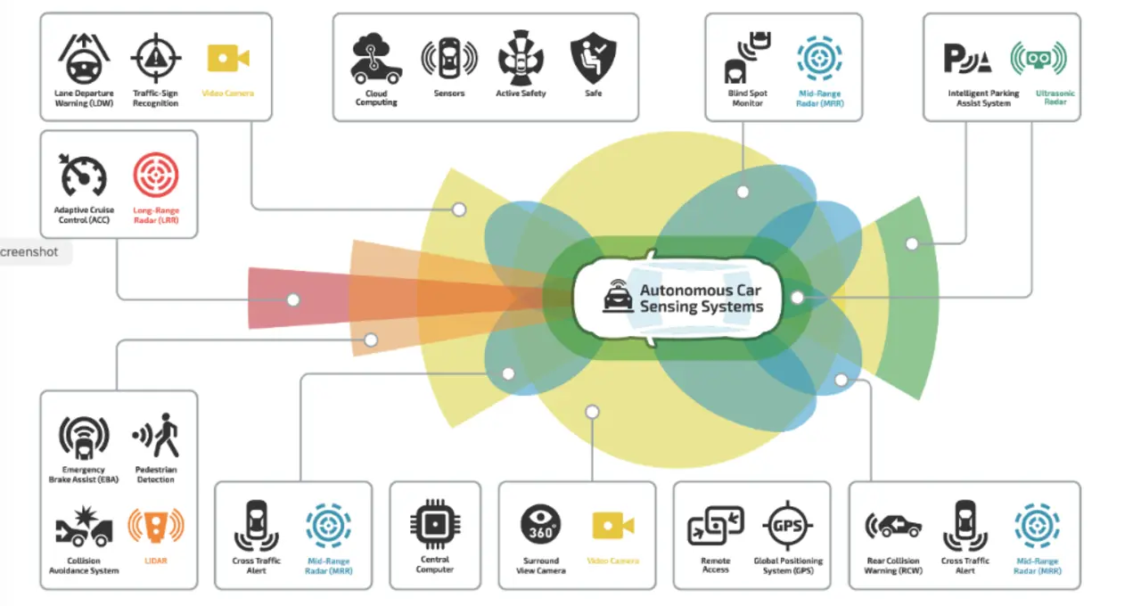 In einem autonomen Fahrzeug bestehen die Augen und Ohren des elektronischen Fahrers aus einer Vielzahl verschiedener Sensoren (Bild 2). All diese sind mit einem zentralen Computersystem vernetzt, das für die sichere Navigation des Fahrzeugs in jeder Fahrsituation verantwortlich ist.