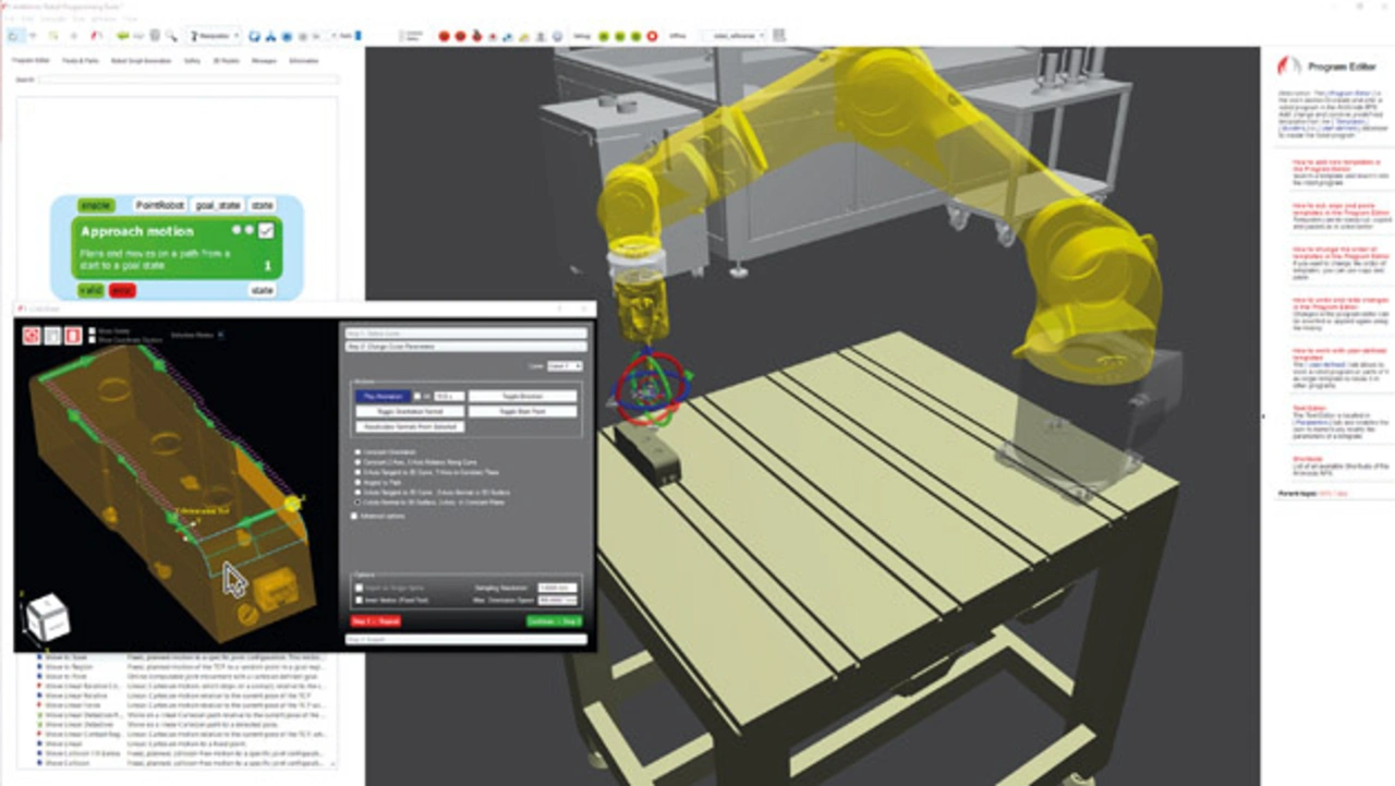 Nicht nur für Neueinsteiger ist die Programmier-Suite interessant. Auch für Unternehmen, die bereits über eine Bibliothek aus Roboter-Code verfügen und diese weiterverwenden wollen, bietet sie verschiedene Lösungsansätze. »Einerseits lässt sich Code aus vorherigen Anwendungen integrieren und für zukünftige Projekte weiterverwenden«, legt Hermann dar. »Andererseits ist auch der umgekehrte Weg denkbar, dass beispielsweise für komplexe sensorbasierte Teilaktionen Code mit der Programmier-Suite erzeugt und in der Programmierumgebung des Roboters eingebunden wird.« Generell wolle ArtiMinds in diesem Zusammenhang den Anwendern keine Vorgaben machen, wie sie den Code nutzen sollen und inwieweit ein schrittweiser Umstieg möglich ist. »Die kombinierte Herangehensweise aus Online- und Offline-Programmierung im Zusammenspiel mit den vorhandenen Regelungsalgorithmen und der Treiberbibliothek erlauben es, prozessorientiert zu arbeiten und diesen Fokus nicht durch zeitaufwändige Detailimplementierungen zu verlieren«, resümiert Hermann.