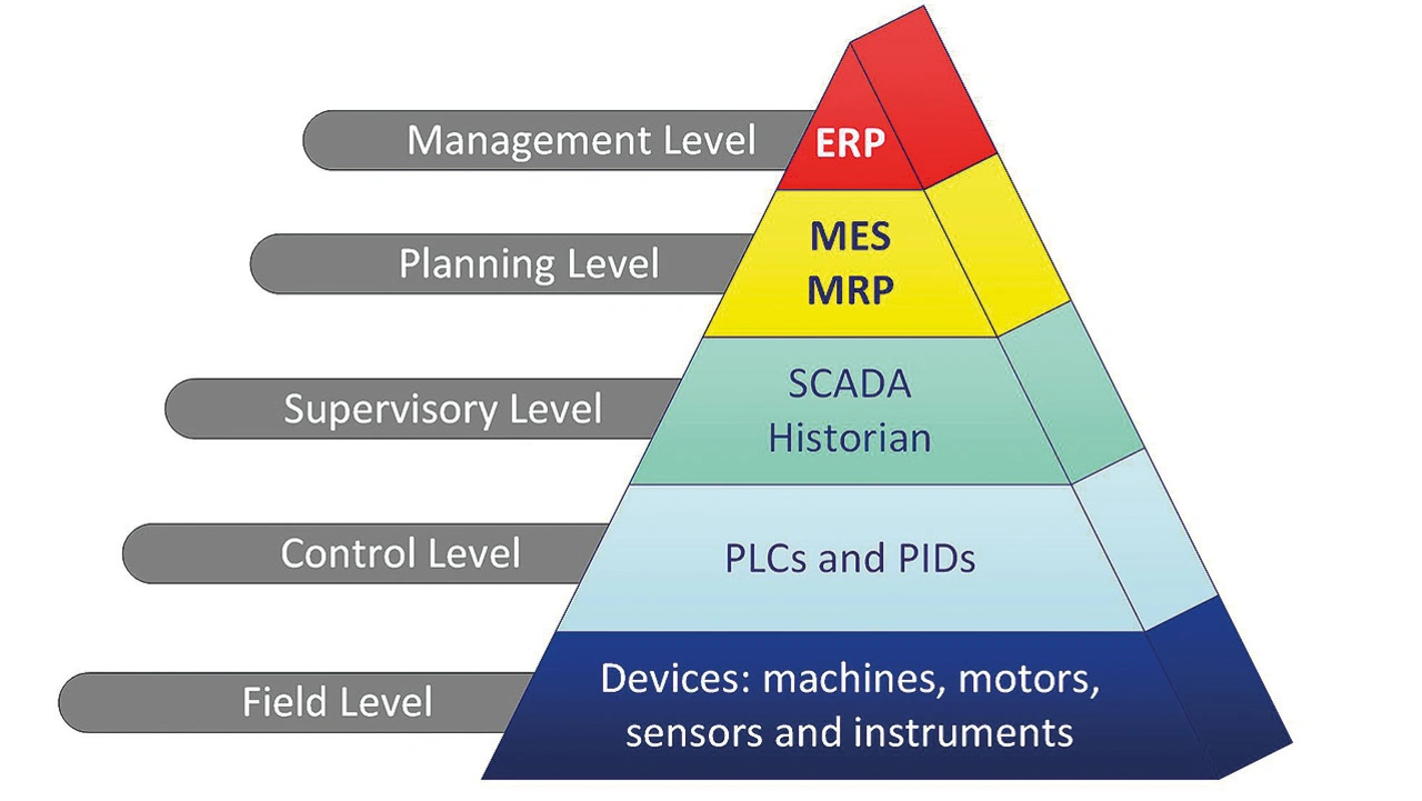 Material-Requirements-Planning- oder Manufacturing-Resources-Planning-Systeme (MRP) bieten Produktionsplanung, Terminplanung sowie Finanz- und Bestandskontrolle. Im Gegensatz dazu speichern Historiensysteme Zeitreihendaten von Sensoren und Instrumenten zur grafischen Darstellung, um Bedienern und Managementsystemen zu helfen, Entwicklungen im Automatisierungssystem zu verstehen und zu verarbeiten. Die statistische Prozesskontrolle (SPC) ist eine historische Anwendung.