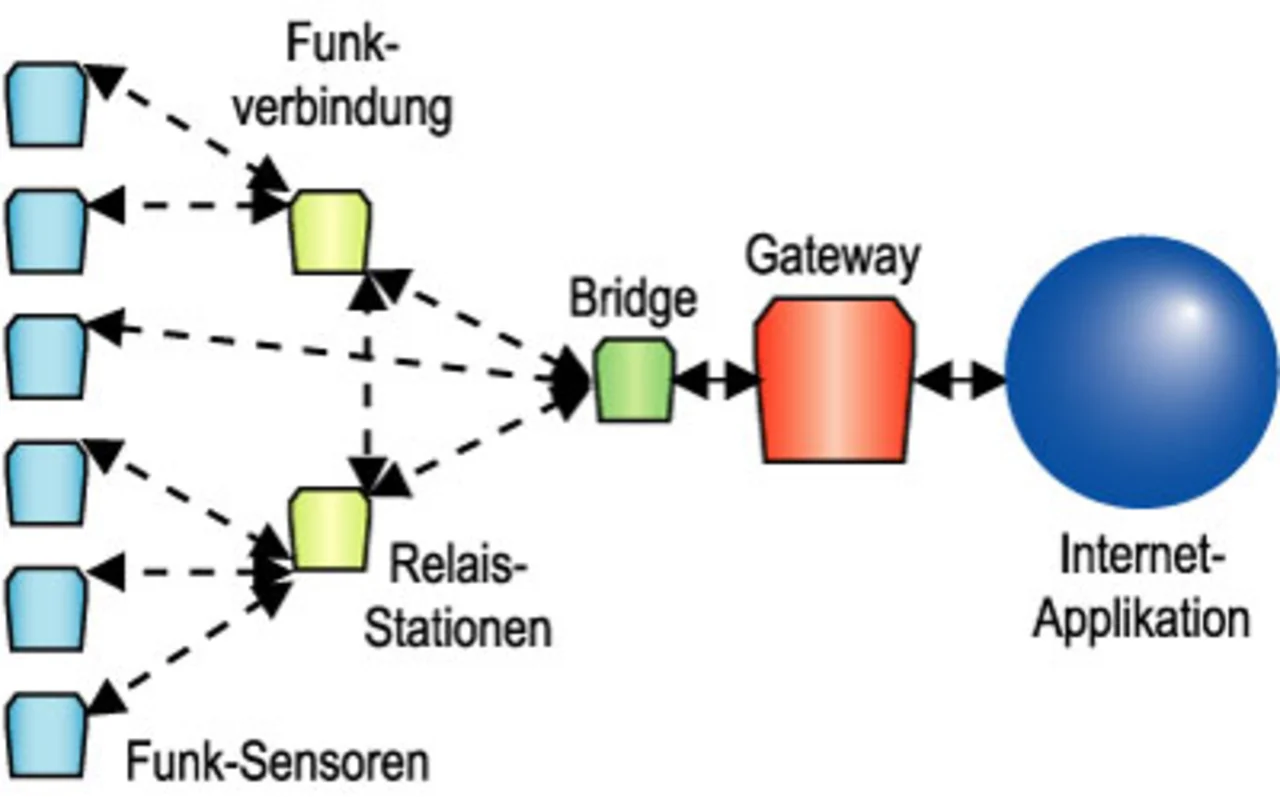 Bei drahtlosen Sensor-Systemen kommen möglicherweise zusätzliche Faktoren hinzu, denn es können mehrere Sensoren in einem Netzwerk (über Relais-Stationen, Bild 1) angeschlossen werden. Hier bewährt es sich deshalb, die Gesamtkosten zur Überwachung eines bestimmten Bereichs zu betrachten und die Summe der Kosten durch die zu überwachende Fläche zu dividieren. In erster Näherung setzen sich die Kosten aus Anzahl und Preis der verwendeten Sensoren, Preis und Umfang der Elektronik, den Kosten für zusätzliche Funkverbindungen (Relais-Stationen, Konzentratoren), den Installationskosten und den Aufwendungen für die Energiequelle zusammen. Die Energiequelle ist hierbei ein wiederkehrender Kostenfaktor, der auch in die Kalkulation der Wartungskosten eingeht. Eine sehr lange haltbare Energiequelle muss in der Regel seltener geladen, ausgetauscht oder in anderer Weise behandelt werden.