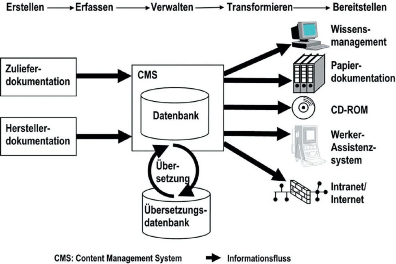 Durch die Strukturierung der Informationen nach mumasy ist es möglich, alle Informationen direkt dem zu beschreibenden Aspekt des Produktes zuzuordnen. Dabei werden nicht nur Baueinheiten, sondern auch Funktionen und Handlungen modelliert, Produkte also aus verschiedenen Sichten beschrieben. Bei Bedarf lassen sich die Informationseinheiten zu Produktbeschreibungen, Funktionsbeschreibungen oder Handlungsanweisungen zielgruppengerecht in verschiedenen Ausgabemedien " zum Beispiel als Papierdokumentation, auf CD ROM, im Werker Assistenzsystem oder via Intranet und Internet " bereitstellen.