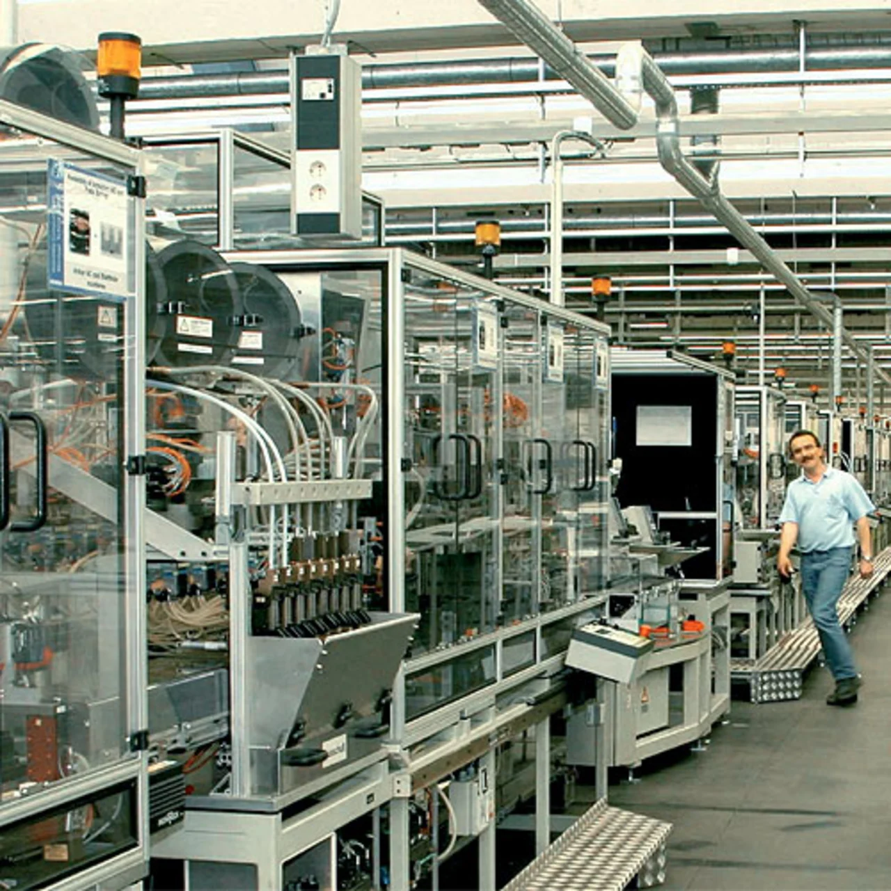 Auf den Werkstückträgern erfolgt nicht nur der Transport der Schalter, sondern auch ihre Montage. Dazu enthält ein an der Unterseite des Werkstückträgers angebrachter RFID-Transponder spezifische Informationen über die zu montierenden Komponenten – neben sämtlichen Fertigungsparametern auch Prüf- und Qualitätsdaten. Etwa 100 berührungslose Schreib-/Lesegeräte übertragen die bereitgestellten, fertigungsrelevanten Informationen zunächst auf die mobilen RFID-Transponder. Die Integration des RFID-Systems erfolgt durch eine spezifische Baugruppe, an die bis zu vier Schreib-/ Lesegeräte über eine serielle Leitung angeschlossen und parallel betrieben werden können.