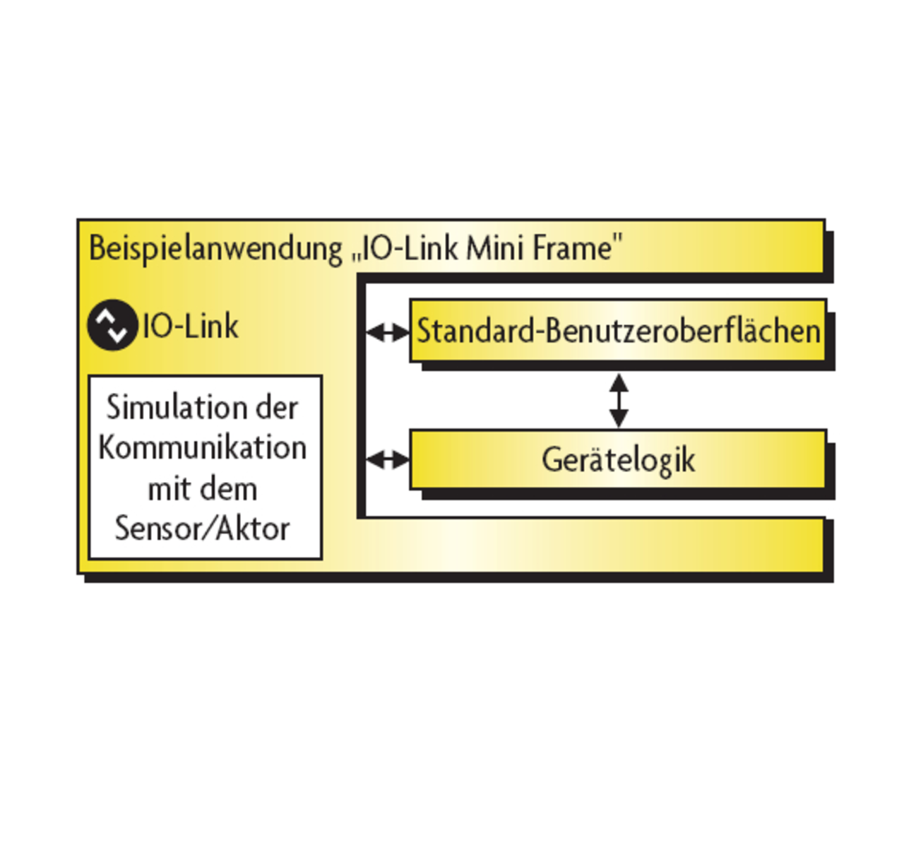 Bei den herstellereigenen Szenarien ist die Integration des Interpreters in die Applikation jedoch selbst durchzuführen. Starthilfe gibt für diesen Fall die Beispielapplikation IO-Link Mini Frame (Bild 7). Sie zeigt exemplarisch die wichtigsten Integrationsaspekte und die Nutzung der Standard-Benutzeroberflächen.