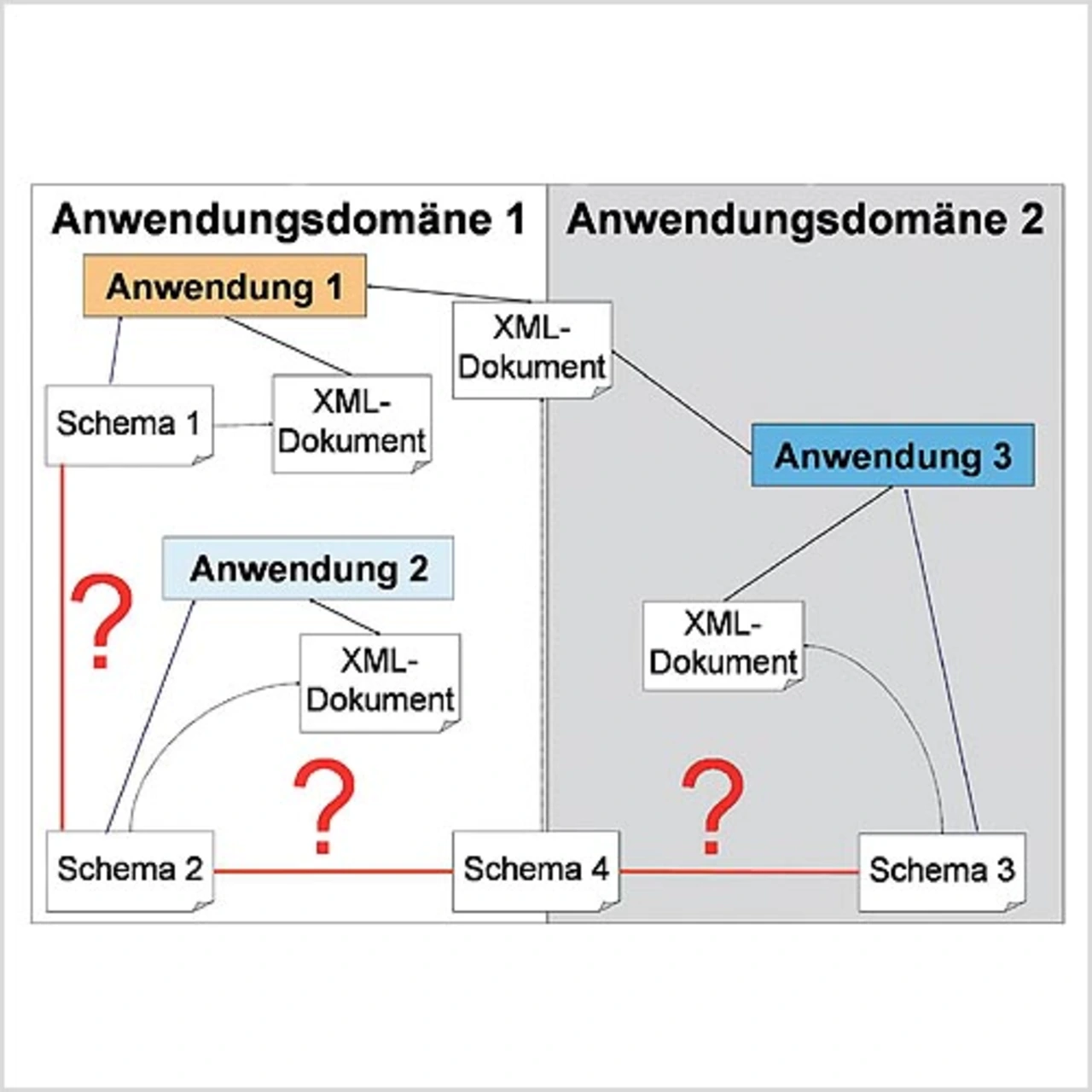 Warum ist das so? Da in der Automation eine Vielzahl XML-basierter Beschreibungssprachen entstehen, die dieselben Informationen mit unterschiedlicher Syntax und Semantik definieren, sind jeweils spezifische Konsumenten erforderlich, die genau „ihre“ XML-Daten erwarten und „richtig“ verwerten. Dies wirdtypisch durch Festlegungen von applikationsspezifischer Syntax und Semantik in Form von XML-Schemata realisiert. Die Schema-Spezifikation des W3C bietet ein Grundgerüst an Elementen, schränkt deren Verwendung jedoch nicht ein. Dadurch entstehen die bereits angesprochenen unterschiedlichen Strukturen für semantisch gleichartige Daten in den einzelnen Anwendungen. Die entstandenen XMLDokumente und Schemata sind daher heterogen und stehen untereinander kaum in Beziehung, wodurch letztlich Vorteile von XML verschwendet werden.