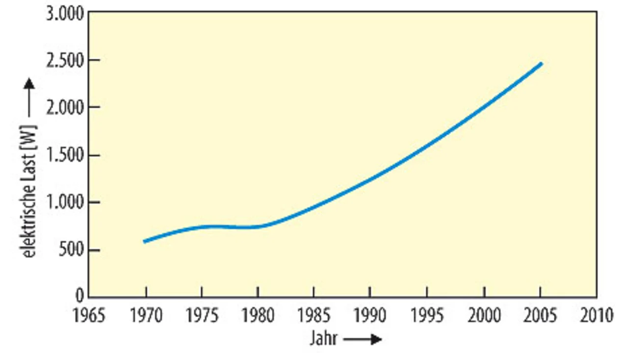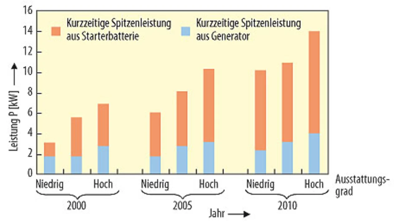 Die Hauptursache liegt in der rasanten Zunahme von Elektronik und elektrischen Verbrauchern im Fahrzeug (Bild 2), die sich in den Betriebsbedingungen der Starterbatterie wie folgt niederschlägt: