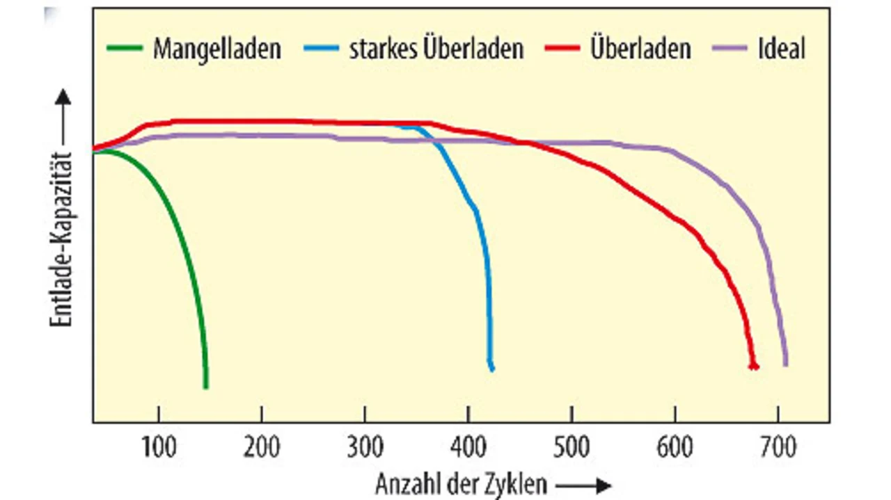 beschleunigt und damit zu frühzeitigen Ausfällen von Starterbatterien führen kann. Der entscheidende Punkt an dieser Stelle ist, dass - bis auf Kurzschluss - alle genannten Alterungsmechanismen zu großen Teilen reversibel sind, sofern eine geeignete Ladestrategie verfolgt wird.