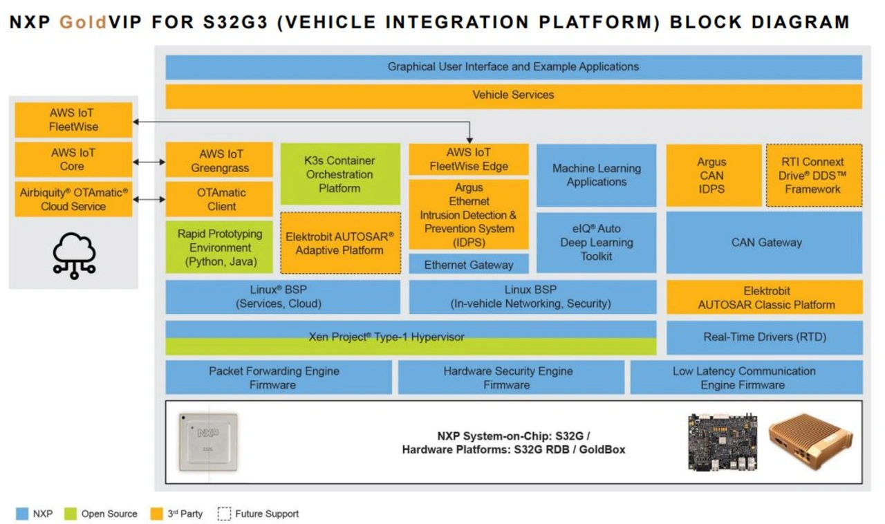 »Wir unterstützen die Entwicklung mit Produkten aus der neuen Serie umfassend«, erklärt Carlson. Beispielsweise steht ein EVB3-Evaluierungsboard, ein Referenz-Design (S32G RDB3) und die darauf basierende GoldBox3-Gehäuseversion zur Verfügung. Dazu kommt eine breite Palette von Aktivierungs-Software und die so genannte GoldVIP (Gold Vehicle Integration Platform). GoldVIP unterstützt Entwickler, die S32G-Fahrzeugnetzwerkprozessoren verwenden, bei der Echtzeit- und Anwendungsentwicklung von softwaredefinierten Fahrzeugen. Die VIP bietet zahlreiche Vorteile für die Evaluierung von S32G-Prozessoren, die Softwareentwicklung und das Rapid Prototyping. Die Entwickler können die S32G-Performance durch Echtzeit-Beispiele und Ressourcenüberwachung direkt analysieren. In der Plattform sind NXP-, Open-Source- und Drittanbietersoftware vorab integriert, einschließlich einer sicheren Anbindung an die Cloud und Over-the-Air (OTA)-Update-Services. Dadurch können sich Entwickler auf die Entwicklung neuer Connected-Vehicle-Services statt auf den Aufbau der Softwareinfrastruktur konzentrieren. In Kombination mit dem S32G-Reference-Design-Board (RDB2) oder dem serviceorientierten GoldBox Gateway-Referenzdesign können Prototypen für Desktop-, Labor- und Fahrzeuganwendungen einfacher und schneller erstellt werden.
