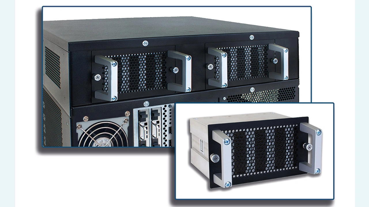 Das optional integrierte InoNet QuickTray, ein robuster Wechseldatenträger mit vier NVME-SSDs im Raid-0-Verbund, ermöglicht diesen hohen und konstanten Datendurchsatz. In Verbindung mit einem zusätzlichen Storage-Unit-Aufsatz (mit Platz für zwei QuickTrays) kann enorme Speicherkapazität von bis zu 300 TB und eine hohe Schreibgeschwindigkeit von bis zu 26 GB/s, also 208 Gbit/s (in Abhängigkeit vom verwendeten SSD-Typ und -Hersteller, real gemessen mit Iometer im »Continuous Write Mode«) bereitgestellt werden.