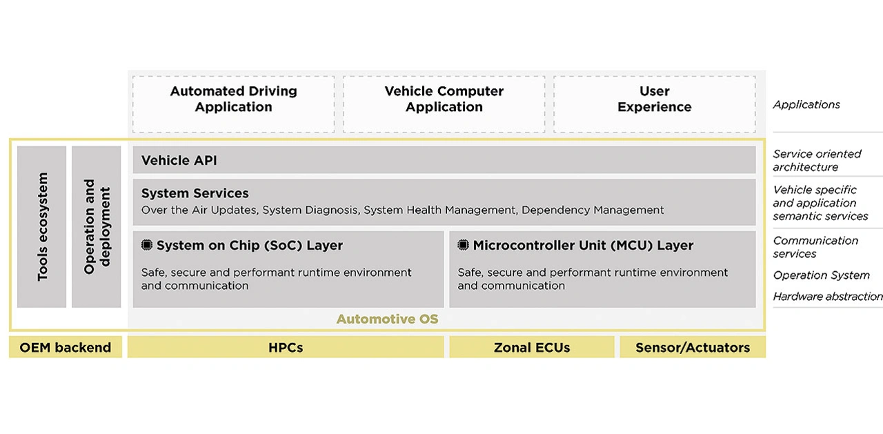 Im klassischen Sinn versteht man unter einem Betriebssystem (OS, Operating System) einen Scheduler, Interrupt-Handler, OSEK OS oder Linux. Doch der Begriff Automotive OS meint im Allgemeinen etwas anderes, nämlich eine komplette Umgebung zur Entwicklung von Software für Fahrzeuge, einschließlich Zielsoftware, Cloud-Ökosystemen, Datenmanagement, Entwicklungstools, Continuous-Delivery-Systemen und vieles mehr.