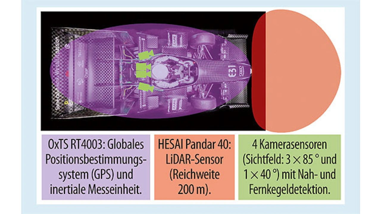 Von großer Bedeutung ist hierbei die genaue Positionsinformation des Präzisions-Inertialnavigationssystems. Die anderen Sensoren können lediglich indirekt die Position des Autos im Raum ausgeben, sodass durch Integration ein fortlaufend größer werdender Fehler entstehen würde.