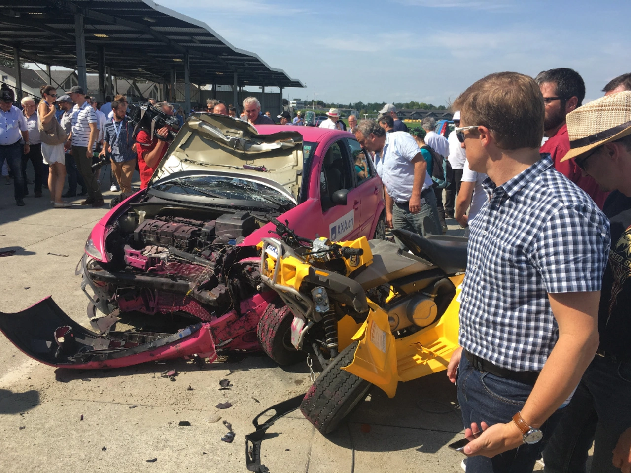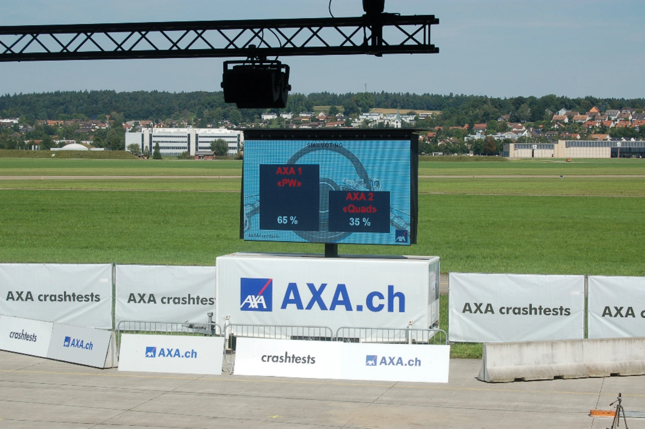 Die AXA Mitarbeiter, die den Crash vorbereitet und durchgeführt haben, entschieden sich im Vorfeld allerdings für Variante B, die Kollision mit dem Quad.