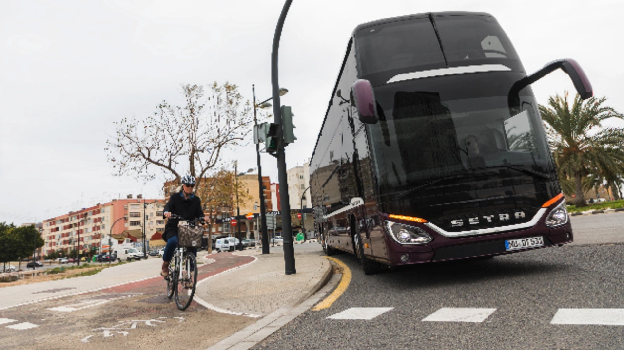 Daimler bietet künftig noch mehr Sicherheit für die Omnibusse von Mercedes-Benz und Setra. Das Unternehmen hatte die Fahrerassistenzsysteme bereits im Jahr 2017 präsentiert – nun werden sie auf weitere Modellreihen der Marken übertragen.