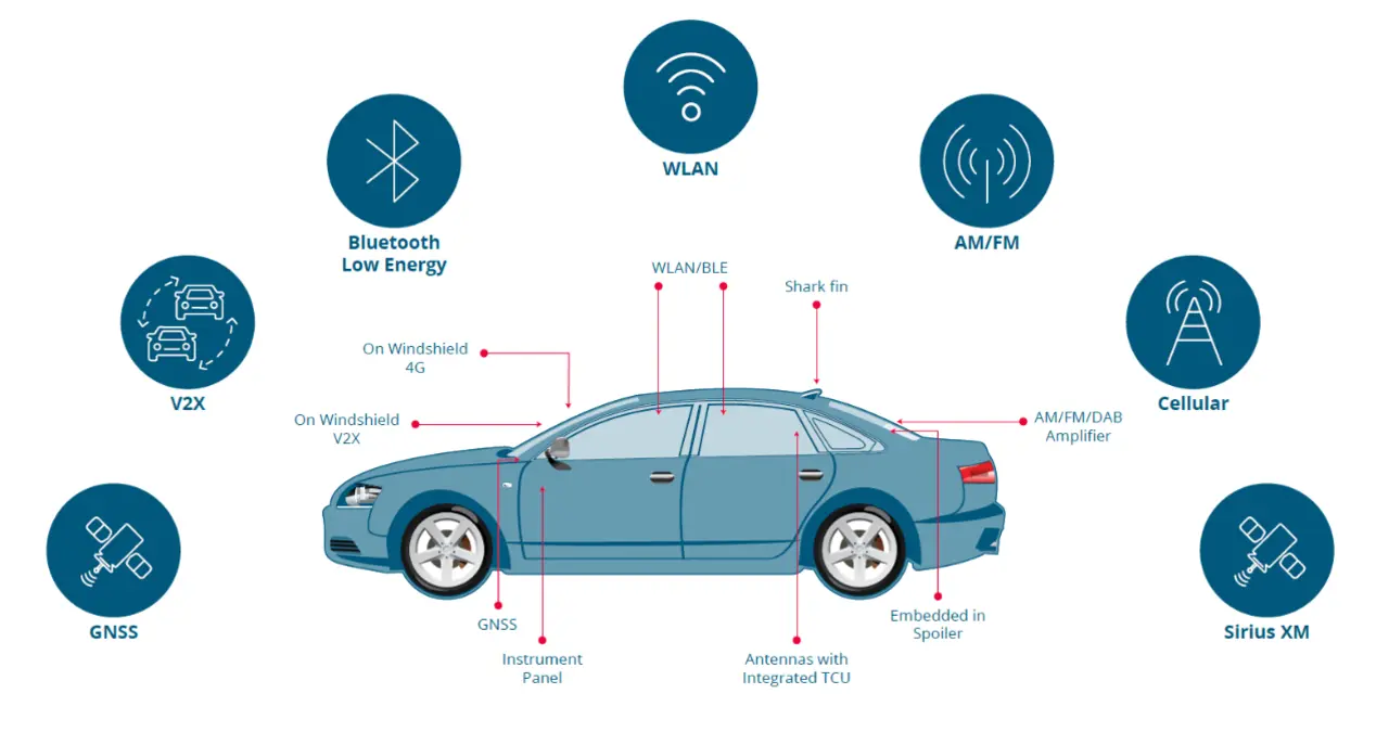 Um sowohl die Ästhetik als auch die Leistungsfähigkeit zu erhalten und zu verbessern, können die Antennen diskret im Fahrzeug integriert werden. Dies erhöht die Zuverlässigkeit des Signals und trägt zu einem schlanken Design des Innenraums und der Karosserie bei.