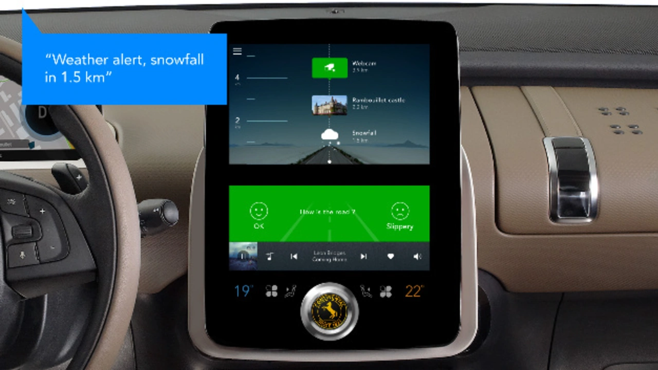 Im Sinne der Mensch-Maschine-Schnittstelle erfolgen die Hinweise nicht nur visuell, sondern auch akustisch per Sprachhinweis. Dies ermöglicht eine umgehende Information des Fahrers, der den Fahrstil entsprechend auf die angekündigten Wettervorkommnisse anpassen kann. Die frühzeitige Kenntnis über gefährliche Straßenabschnitte wird das Risiko von Verkehrsunfällen reduzieren und für eine erhöhte Wachsamkeit des Fahrers sorgen. Eine wetterbedingte Anpassung der Navigationsroute kann nun auf Basis der zusätzlichen Wetterinformationen erfolgen.
