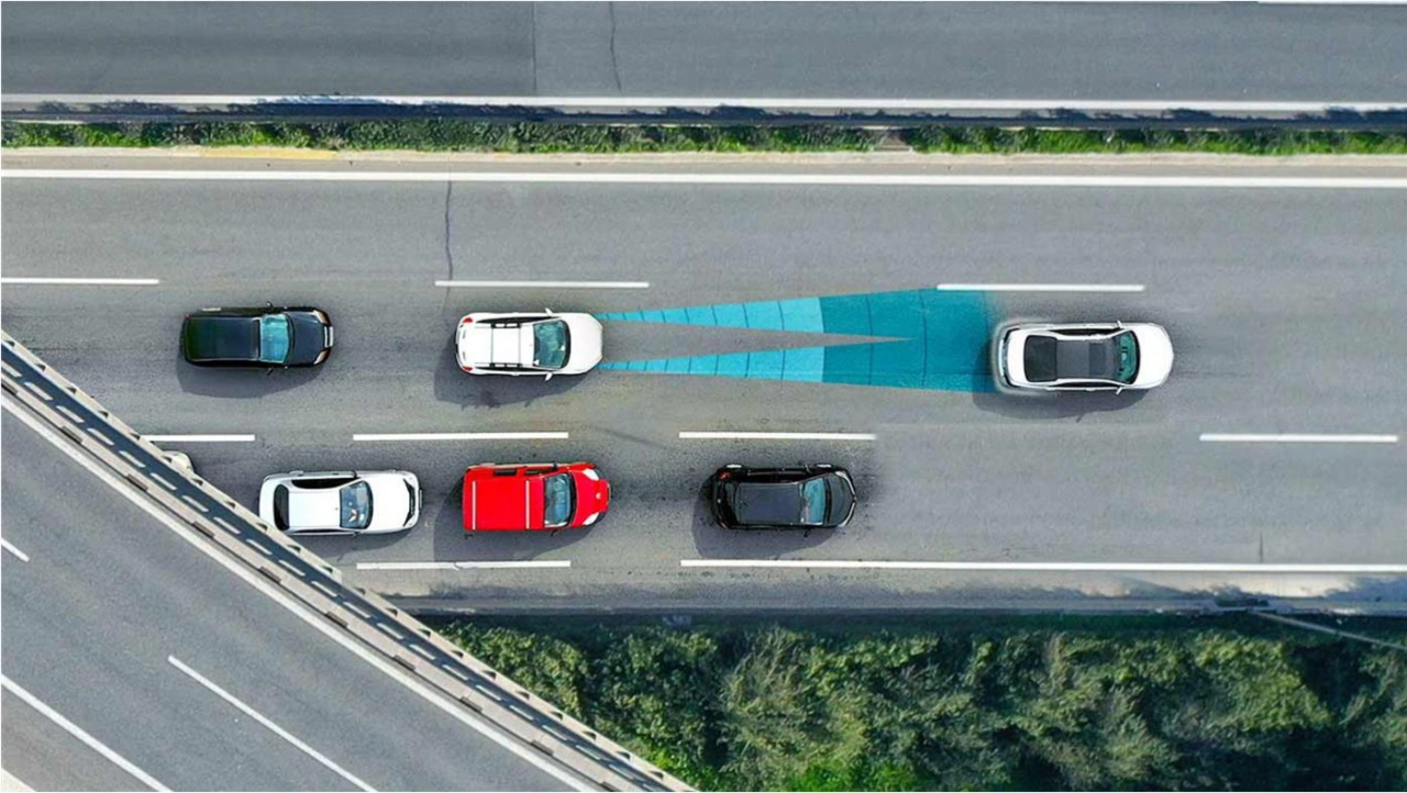 Bild 1 veranschaulicht, wie Frontradarsysteme andere Fahrzeuge detektieren und die Distanz zu ihnen messen.