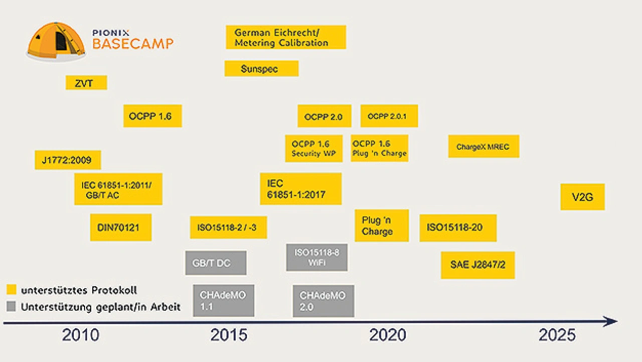 Die Kompatibilität mit dem Charger-Betriebssystem EVerest ist getestet und eine angepasste Version der Open-Source-Software steht zum Download bereit. Zudem bietet Pionix die Elektronik im Bundle mit seiner umfassenden Ladesoftware BaseCamp inklusive Software-Maintenance, Update-Service und weiteren Leistungen an. Das Framework unterstützt zahlreiche Protokolle für die Integration mit Infrastruktur, Fahrzeugen, Bezahlsystemen und verfügt für die Kommunikation oder Einbindung in Netzwerke über einen lokalen MQTT-Server (Message Queuing Telemetry Transport). Unternehmen können ihre Applikationssoftware direkt auf diese Basis aufsetzen.