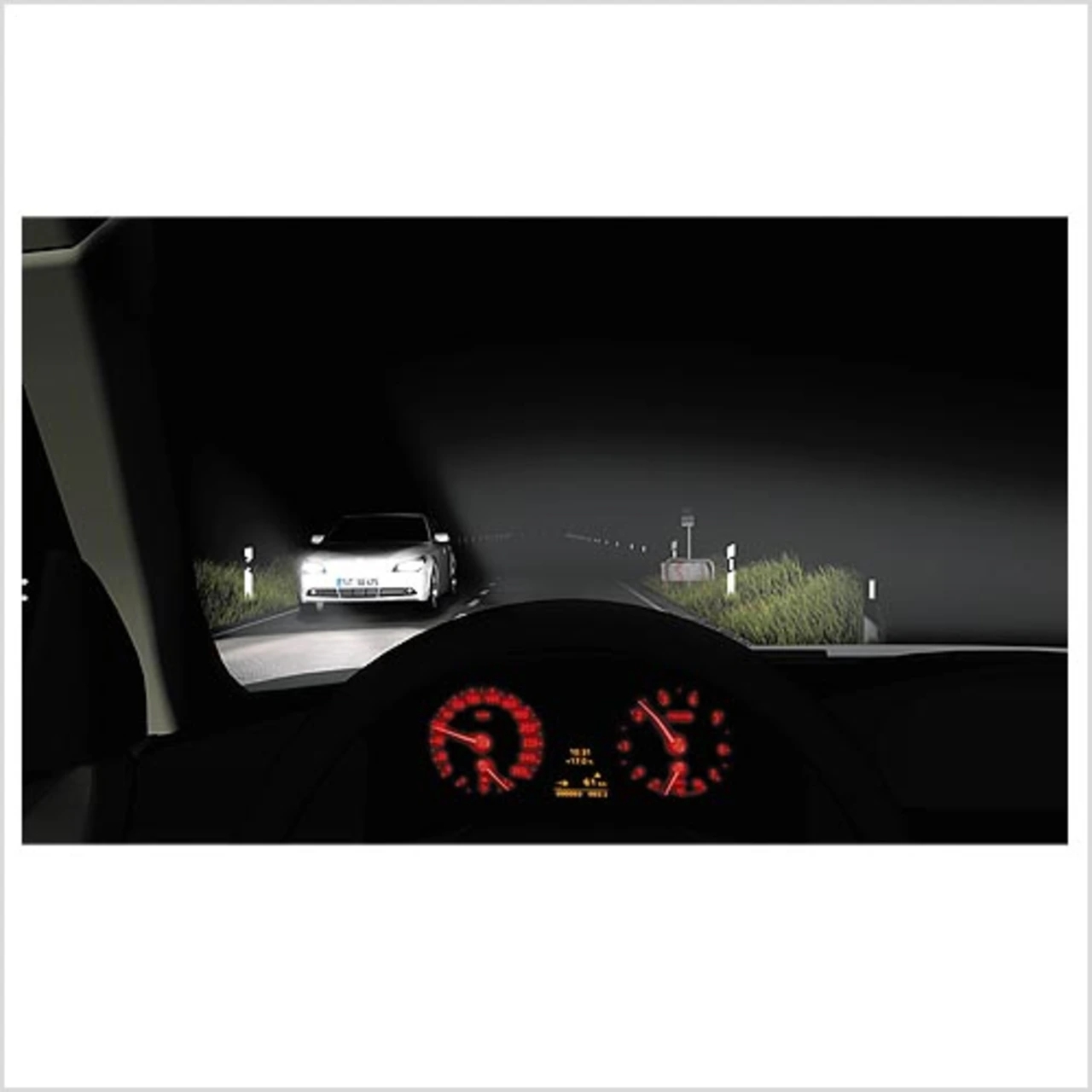 Die rasante Entwicklung ihrer Leistungsfähigkeit macht sie jetzt auch für das Abblend- und Fernlicht nutzbar. Dabei nähert sich die Lichtfarbe der weißen LEDs (Farbtemperatur ca. 5500 Kelvin) dem Tageslicht (ca. 6000 Kelvin) noch wesentlich weiter an als das Xenonlicht (ca. 4000 Kelvin, blau). Das kommt den Sehgewohnheiten des Menschen entgegen. Der Autofahrer ermüdet nicht so schnell und fährt entspannter. Darüber hinaus überzeugen auch die weißen LEDs durch schnelle Ansprechzeit, und man kann zwei Funktionen (etwa Positions- und Tagfahrlicht) mit einer Lichtquelle abdecken. Ihre Lichtausbeute steigt rapide: Liegt sie heute bei über 40 lm/W, so gibt es in den Forschungslabors bereits Prototypen mit zirka 130 lm/W (im Vergleich dazu Xenonlicht ca. 90 lm/W, Halogenlicht 20 lm/W).