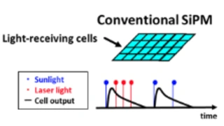 SiPM eignen sich für Messungen über große Entfernungen, da sie sehr lichtempfindlich sind. Die auf ihnen aufgebauten Lichtempfangszellen benötigen jedoch nach dem Auslösen eine Erholungszeit. Bei hellem Umgebungslicht erfordern sie zudem eine große Anzahl von Zellen, da sie mittels Reservezellen auf reflektiertes Laserlicht reagieren können müssen.
