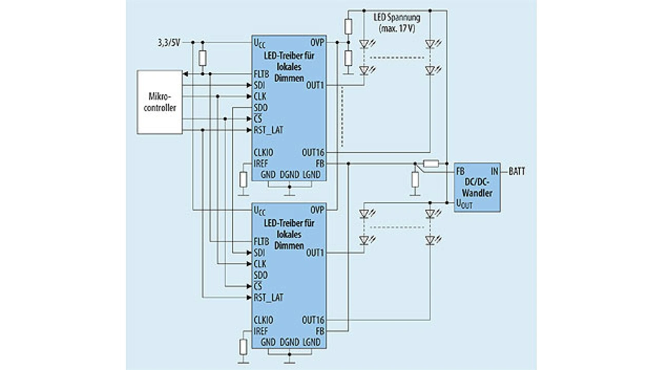 Das Design einer typischen Anwendungsschaltung für lokales Dimmen zeigt Bild 2.