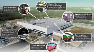 Auf dem Gelände des Incampus in Ingolstadt eröffnet Audi ein neues Fahrzeugsicherheitszentrum mit deutlich verbesserten Möglichkeiten für Crashtests. Es verfügt über eine 250-m-Anlaufbahn, einen mobilen 100-Tonnen-Crashblock und die Möglichkeit, zwei Fahrzeuge im 90°-Winkel kollidieren zu lassen.