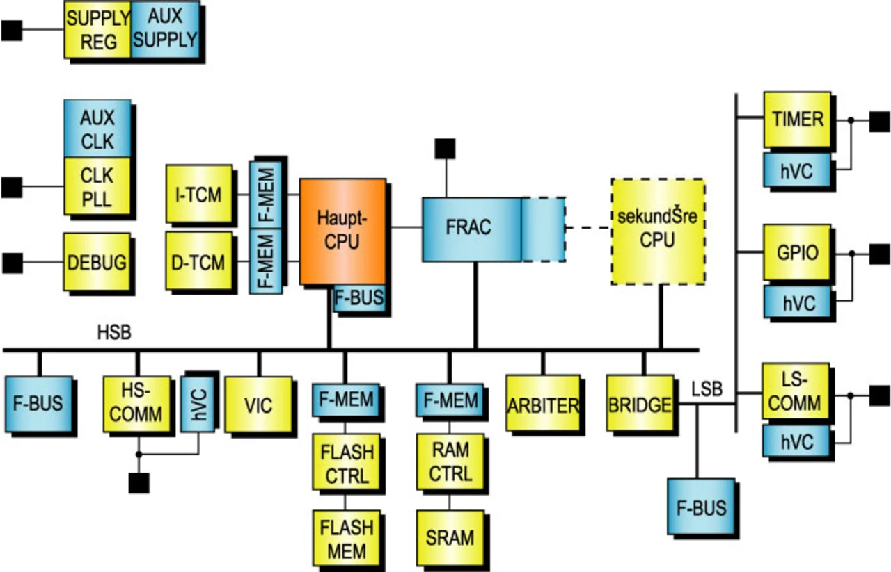 Dieser Coprozessor wird unterstützt und ergänzt durch Selbsttests, die er selbst initiieren kann. „Memory Scrubbing“-Techniken – in regelmäßigen Abständen wird der gesamte Speicherinhalt ausgelesen und neu geschrieben, um zu vermeiden, dass sich korrigierbare Ein-Bit-Fehler zu nicht korrigierbaren Multi-Bit-Fehlern auswachsen –, redundante Busse sowie Protokoll- und Funktionschecker für Peripheriemodule, so genannte Hardware Verification Components, erweitern die Diagnose über die CPU hinaus auf den gesamten Chip.