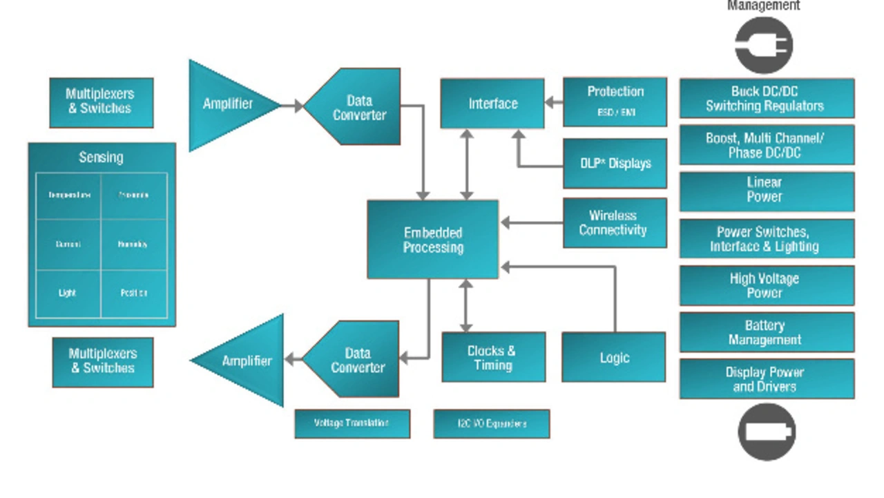 Systemintelligenz beginnt damit, über Sensoren Daten einzuholen und die analogen Informationen anschließend für die digitale Weiterverarbeitung zu verstärken und umzuwandeln. Sensoren von Texas Instruments decken dabei einen breiten Bereich von unterschiedlichen Zuständen ab – Position, Nähe, Temperatur, Druck, Licht, Schall, Flüssigkeiten, Geschwindigkeit und Materialien. Zudem sind auch Ultraschall- und Radarsensoren verfügbar, die Fahrassistenzsysteme unterstützen. Die Sensor-ICs können zusätzlich Signalaufbereitungs- und Kommunikations-Funktionen integrieren.