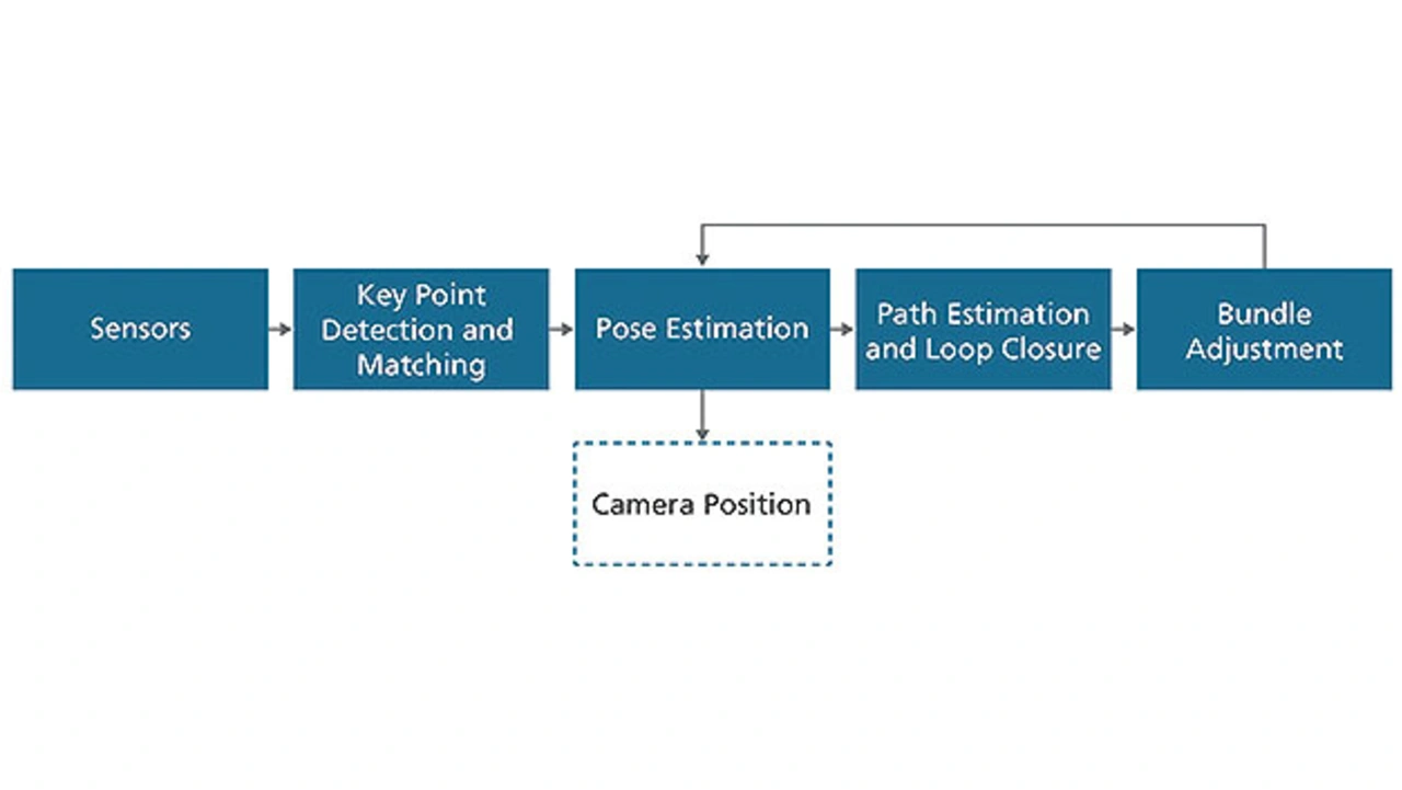 Bild 4 zeigt einen verallgemeinerten SLAM-Ablauf. Jeder der Blöcke basiert auf einem klassischen Ansatz der visuellen Verarbeitung. Allerdings erfordern sie verschiedene lineare Algebra- und Matrixoperationen und somit eine hohe Rechenleistung. Die Implementierung ist auf einer CPU oder GPU möglich.