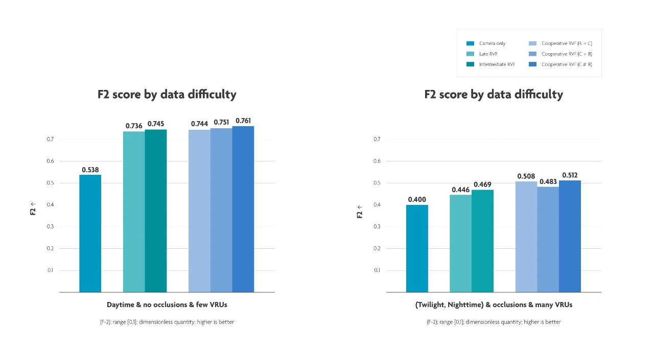 Vergangenes Jahr haben die IPI-Forscher gezeigt, dass ihr kooperativer Sensorfusionsansatz die heute übliche Late-Fusion-Methode übertrifft. Darüber hinaus ist sie einfacher zu implementieren als die frühe Fusion, da sie nicht mit denselben Bandbreitenproblemen und Implementierungsbeschränkungen einhergeht. Bei der Auswertung eines Datensatzes komplexer Verkehrsszenarien in einem europäischen Stadtzentrum konnten die Forscher Fußgänger und Radfahrer um 20 % genauer verfolgen als ein reines Kamerasystem. Darüber hinaus übertraf ihr erstes Erkennungsmoment konkurrierende Ansätze um eine Viertelsekunde.